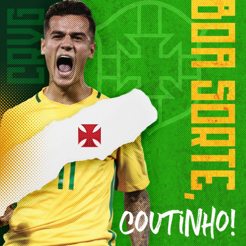 Em quarto e quinto lugar, temos tweets do perfil oficial do Clube de Regatas Vasco da Gama um com uma imagem do jogador de meio-campo da seleção brasileira Philippe Coutinho , que também joga pelo Vasco, com os dizeres “Boa sorte, Coutinho!” ao seu lado e outro com uma imagem das datas e horários dos jogos disputados pelo Brasil e por Portugal, que estão em grupos diferentes, deixando de promover rivalidade e sim irmandade com a legenda: “Nossa pátria e nossas raízes! Acompanhe Brasil e Portugal na #Copa 2018”.