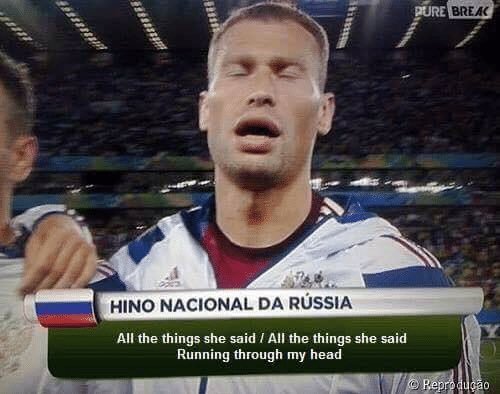 Em oitavo lugar, o único perfil que possui uma imagem em destaque e é um perfil pessoal, o @LwithP publica uma foto de um jogador russo cantando o hino de seu país, mas a letra do hino nacional da Rússia foi trocado pela letra da música “All The Things She Said” da banda t.A.T.u. e foi acompanhada da hashtag “rainbowcup”. A troca da letra do hino pela da música, um hit da banda russa com duas cantoras lésbicas, e a presença da hashtag faz entender que o tweet é uma crítica a homofobia presente no país.